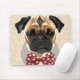 Mops mit der Krawatte "Rot und Weiß" Mousepad