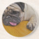 Mops mit einem zu viele Untersetzer.