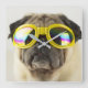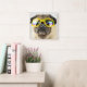 Mops mit Goggles Quadratische Wanduhr