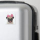 Mops Hund mit Zunge aus einem rosa Band, rosa, weißer Hintergrund.