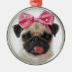 Mops mit rosa Bow Ornament Aus Metall