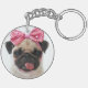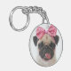 Mops mit rosa Bow Schlüsselanhänger