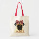 Mops mit rotem Spott auf Kopf 2 Tragetasche
