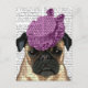 Mops mit Vintagem Lila Hut Postkarte
