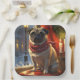 Mops mit Weihnachtsbeleuchtung Urlaub Pappteller