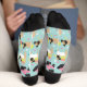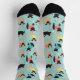 Cute birthday party Pug dogs with black and tan coats dressed in cute birthday outfits with ballons, cake and confetti pattern.