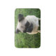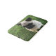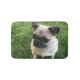 Adorable Mops Welpe sitzend auf Gras, Blick auf die Seite auf der nicht-Mitte Foto, die Raum verlasse, um mit Ihrem eigenen Text.