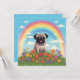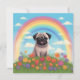 Eine personalisierte Mops-Gedenkkarte mit einem wunderschönen Bild eines Mops auf einem himmlischen Hügel mit einem schönen Regenbogen-Overhead. Die Symbolisierung des Mops Hundes hat die Regenbogenbrücke an den Hundehimmel übergeben. Sie können ihn mit dem Namen Ihres eigenen Mops oder mit jedem anderen Text auf der Kartenrückseite personalisieren. Erhält ein besonderes Denkmal oder ein Beileid für jeden Mops-Hundeliebhaber, wenn sein lieber Hund vorbei ist.