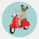 Karo heraus dieser Mops, der seinen roten Vintagen Roller reitet! Dieser niedliche Mopsentwurf würde für Vespa- und Hundefans ebenso groß sein.