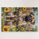 Mops Sonnenblumen-Gartenkunst Puzzle