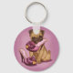 Herrlicher Mops Welpe mit rosa Bugschuh in seinem Mund bemalt von der Künstlerin Maryline Cazenave.