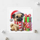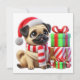 Feiern Sie die Saison mit diesem charmanten Mops, umgeben von farbenfrohen Geschenken, eine festliche Weihnachtsmannmütze und Schal. Eine wunderbare Karte, um allen Weihnachtsjubeln zu schenken
