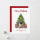 Niedlicher Mops "Frohe Weihnachtskarte" mit Weihnachtsbaum und Geschenk. Personalisieren Sie Ihren Text.