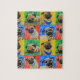 Blöcke des entzückenden Mops stellt auf Primärfarbhintergründen jeder mit ihren großen Augen und verschiedenen Ausdrücken gegenüber.
