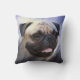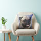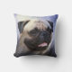 Rehbraunes Mopsgesicht über einer blauen hued Malerei mögen Hintergrundhundeliebhaber Throwkissen