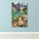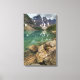 Das wunderschöne türkisblaue Wasser des Moraine Sees. Das Hotel befindet sich im Banff National Park, Alberta Canada.