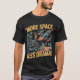 This vibrant and witty t-shirt logo perfectly encapsulates a desire for peace and tranquility amidst life's chaos. Front and center, a cool and composed astronaut stands with arms crossed, radiating an air of unflappable calm. Behind him, a bustling space scene unfolds with retro-futuristic rockets soaring through the cosmos, leaving fiery trails, and two charmingly vintage robots engaging in a playful (or perhaps not-so-playful) laser battle on a dusty alien landscape.
