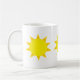 Drei gelbe Sonnen auf einer Kaffee-Tasse also -c$ihnen können steigen und scheinen.
