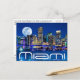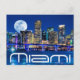 Blick auf die Innenstadt Miami, Florida, USA über die Biscayne Bay auf einem coolen Winter Morgengrauen mit Vollmond, der im Hintergrund über der Skyline steigt.