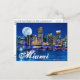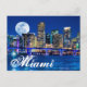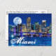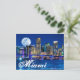 Blick auf die Innenstadt Miami, Florida, USA über die Biscayne Bay auf einem coolen Winter Morgengrauen mit Vollmond, der im Hintergrund über der Skyline steigt.