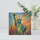 Die Postkarte besticht durch eine lebendige, wirbelnde Neuinterpretation der Freiheitsstatue im ikonischen Stil von Vincent van Gogh. Die Statue steht hoch gegen einen dynamischen, ausdrucksstarken Himmel - dick, wirbelnde Pinselstriche in Kobaltblau, goldgelb und feurigen Orange. Die Fackel von Lady Liberty brennt hell, die Flammen lebend mit Bewegung. In der Ferne entfaltet sich die schwache Kontur der Skyline der Stadt aus den strukturierten Strichen und vermischt traumhaften Optimismus mit kühner Entschlossenheit. Dieses Design und diese Botschaft vereinen künstlerische Inspiration mit einem hoffnungsvollen, zukunftsorientierten Geist, das die Widerstandskraft und die bleibenden Ideale der Freiheit feiert.