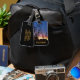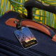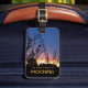 Morgenfarben steigen zwischen den Silhouetten der Gepäckanhänger