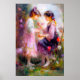 Ein von der KI generiertes Bild von zwei Mädchen, die Blume in einem Garten bewundern.