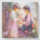 Ein von der KI generiertes Bild von zwei Mädchen, die Blume in einem Garten bewundern.