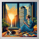 Morgenzeit in der Stadt | Reflektierende Frau Poster