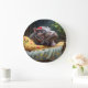 "Morning Snuggles: Baby Hippo Wecke in Basket, Große Wanduhr