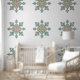 A unique artistic design inspired by authentic Moroccan embroidery, featuring a symmetrical central star surrounded by intricate geometric motifs that reflect traditional craftsmanship and cultural richness. The elegant harmony of turquoise, gold, and soft green tones creates a warm and luxurious feel, making this design a perfect choice for lovers of refined decor inspired by Moroccan heritage. A statement piece that adds artistic elegance and transforms any space into a visually captivating experience.