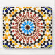 A design inspired by authentic Moroccan Zellige art, combining precise geometric symmetry with a harmonious balance of warm and cool colors in a vibrant composition.