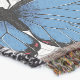 Nahtloses Muster mit blauen Morpho-Schmetterlingen auf hydrangea Blume linework Hintergrund.