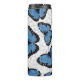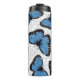 Nahtloses Muster mit blauen Morpho-Schmetterlingen auf hydrangea Blume linework Hintergrund.