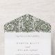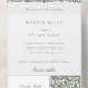 Erhöhen Sie Ihre Hochzeitkorrespondenz mit dieser einmaligen Einladung, die eine abnehmbare RSVP-Karte für den Komfort Ihrer Gäste bietet. Inspiriert durch die grünen und miteinander verflochtenen Muster von William Morris, präsentiert die Spitze der Einladung ein üppiges waldgrünes Design, das den Charme und die Eleganz der Kunst- und Handwerksbewegung ausstrahlt. Im Folgenden wird die Haupteinladung auf einem knalligen, weißen Hintergrund mit einem klassischen Schriftart gedruckt, in dem die wichtigsten Details Ihres besonderen Tages präsentiert werden. Das innovative Abreißdesign ermöglicht einen mühelosen Reaktionsvorgang und sorgt für ein nahtloses Erlebnis für Ihre Einladenden. Diese Öko-freundliche Option minimiert den Papierverbrauch, ohne den Stil oder die Funktionalität zu beeinträchtigen.