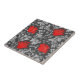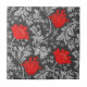 Große Keramik-Kachel in einem Vintagen William Morris Blumendach-Muster aus anemonischen Blume und Blätter, digital verstärkt und farbig - hellsilbergraue/graue Blätter und Blume in Tiefenlippenstift rot auf dunkelgrau Hintergrund