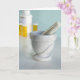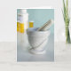 Mortar und Pestle, Flaschen im Hintergrund Karte