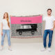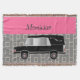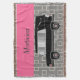 Mortiker Woven Blanket in rosa Hintergrund mit grauem und cremefarbenem Muster und Künstler zeichnete Herzdesign. Das ist ein großes Dankeschön an jeden Mortiker.