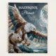 Personalisierter Planer. Ai-Kunst, die einen braunen Bären darstellt, und Adler, der vor dem Vollmond im Mosaikstil fliegt.