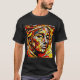 Das Bild zeigt ein fesselndes abstraktes Portrait eines weiblichen Gesichts, das in einer lebhaften Farbpalette aus Rot, Orangen, Gelb und Blues dargestellt wird. Das Gesicht ist im Profil dargestellt, mit komplizierten Mustern und Formen, die sowohl die Gesichtszüge als auch einen faszinierenden Hintergrund bilden. Der Gesamtstil lässt sich als Mischung aus Buntglas und Jugendstil mit einer psychedelischen Touch beschreiben.