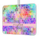 Ein buntes, trendiges Mosaik in verschiedenen Farbtönen wie Rosa, Grün, Blau, Orange...alle Farben des Regenbogens. Ein rosa Band läuft über das Design, um Ihren Namen oder anderen Text zu schreiben. Das ist das ideale Geschenk für jeden, der coole, abstrakte Designs mag.