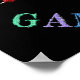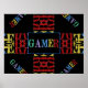 Modernes Design für Gamer. Ein schimmerndes Mosaikbild des Wortes "Gamer" bildet den Hintergrund und das Wort GAMER in verschiedenen schimmernden Farben in der Mitte, um Ihre Aufmerksamkeit zu erregen.