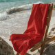 Mosaik Solid Red Textured Pattern Beach Handtuch. Passen Sie dieses Design mit Ihrem Bild an, wenn Sie diese Vorlage personalisieren.
