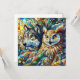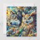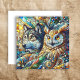 Ai Art stellte einen Wolf und eine Eule in einem Fliesenmosaik-Stil dar. Blauer Wölf und schwere Eule leere notecard. Ideal für jeden, der wild Liebe.