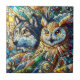Ai Art stellte einen Wolf und eine Eule in einem Fliesenmosaik-Stil dar. Blaue Augen Wolf und ernsthafte Eule Kachel. Ideal für jeden, der wild Liebe.