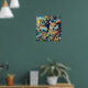 Ai Art stellte einen Wolf und eine Eule in einem Fliesenmosaik-Stil dar. Blaue Augen Wolf und ernsthaftes Eule Poster. Ideal für jeden, der wild Liebe.