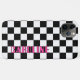 Spaß funky Schwarz und Weiß, und heiß rosa Karo Fahnen Muster Design. Mit Raum zum Personalisieren oder Anpassen mit einem Namen Ihrer Wahl in leuchtenden weißen und schwarzen Farben. Funky, elegant, stilvoll und eklektisch für die extravagante künstlerische Mode, die künstlerische Modediva, der beliebte angesagte Trendsetter, Vintager Retro-Kunststil und abstrakter, geometrischer Motiv-Liebhaber, der will, ihr Handy vor Staub und Schmutz, Verschleiß und Tränen zu schützen. Dieses Design ist für Apple iPhone 6, 7, und 8 Plus, 10 oder X, XR, XS, 11, 12, 13 Mini, 14, 15 Plus und Pro Max Handy Hüllen erhältlich. Zeigen Sie Ihren Stil, sehen Sie modern aus und fühlen Sie sich stilvoll mit einem einzigartigen Design auf einem mobilen Zubehör Ihrer Wahl.