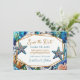 Über "I do" sagen? Nun, hier sind einige hübsche Hochzeit an der Küste speichern die Dattelkarten mit einer Abbildung von Mosaik gebrochenen Fliesen, Buntglasstrände Design in Gold und Blues. Zwei Meerpferde, die sich in einem Meer von vibrierenden Farben, umgeben von Korallen und knusprigen blauen Wasser. Strandfische, Korallen und unterhaltsame Strandelemente schmücken dies Save the Date.