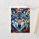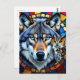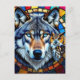 Sage einem Freund oder Familienmitglied mit diesem abstrakten Mosaik Stil ai Illustration eines Wolfs mit blauen Augen und einer Eule.