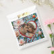 Personalisierte Geschenktaschen für einen Hochzeitsempfang mit den Initialen von Braut und Bräutigam, Hochzeitstag und Foto. . Eine wunderschöne Illustration, die ein Mosaik aus Buntglas und Fliesen aus Korallenbänken mit blauen und anderen farbenfrohen Akzenten nachahmt.